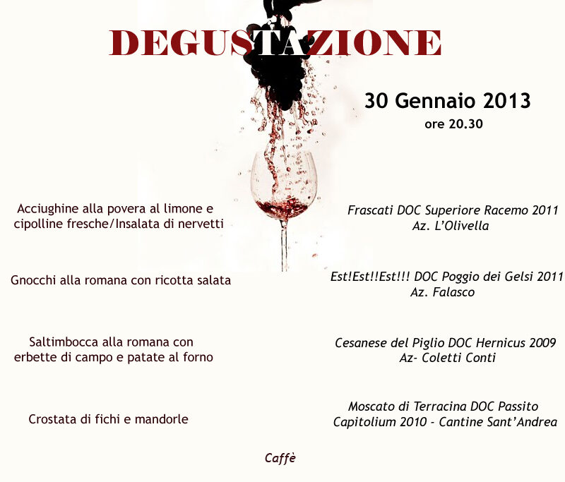 30 gennaio, degustazione vini del Lazio